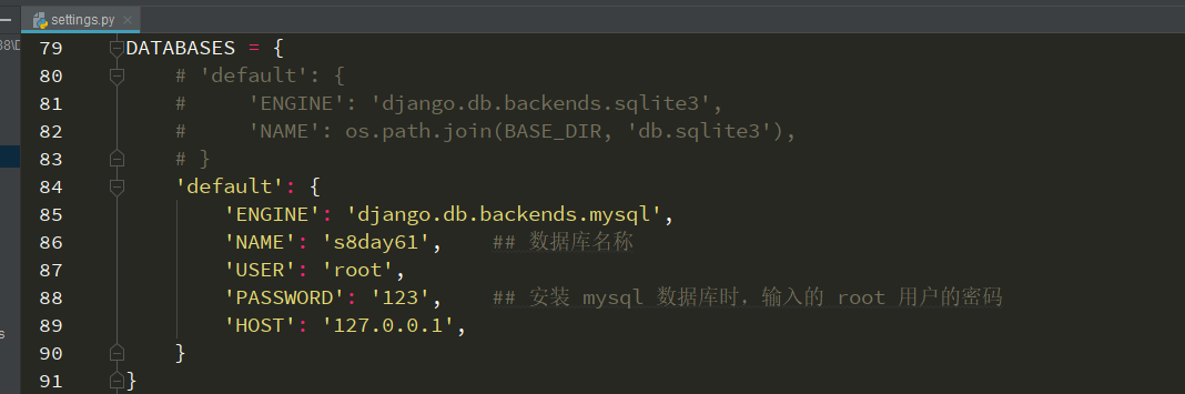 1 | 将默认的数据库引擎由默认的sqlite改为mysql |